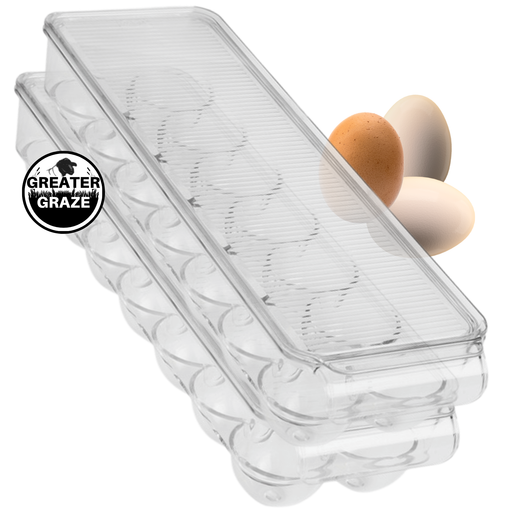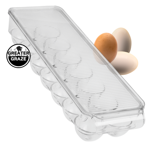 Greater GrazeClear, convenient 14-egg tray for the fridge or counter! Sturdy, comes with a cover, and can be stacked. Fits a variety of egg sizes — from small...