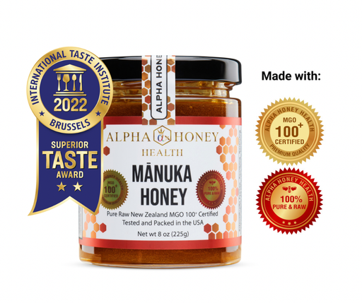 Alpha Honey HealthSpeedyVite® Recommended and Approved Pure, Raw New Zealand MGO 100+ Manuka Honey – Carefully selected for the highest quality – Tested, poured, a...