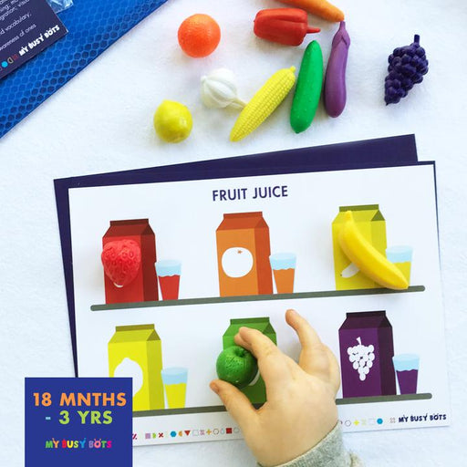 View full detailsEasy Peasy Lemon Squeezy - My Busy Bots Bag aids in development in learning fruits, vegetables & squeezing skills